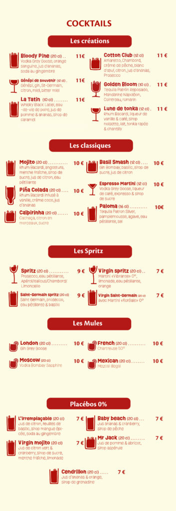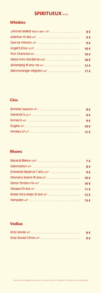 LA CARTE DU BAR