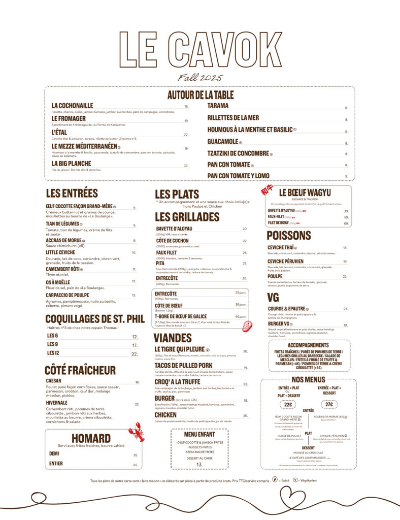Le Cavok, c’est le rendez-vous des copains, des vacanciers et amoureux d’une belle table de février à novembre. On s y’ réunit dans une ambiance festive, musicale pour y manger une belle pièce de boeuf, partager une planche autour d’un cocktail ou d’une bonne bière pression.
