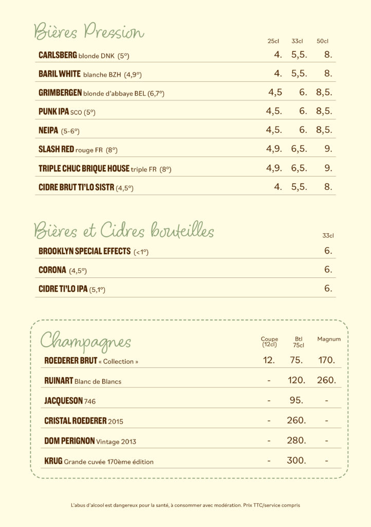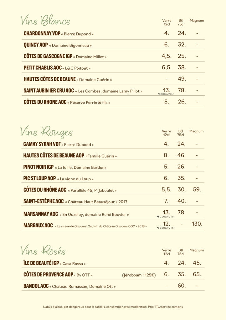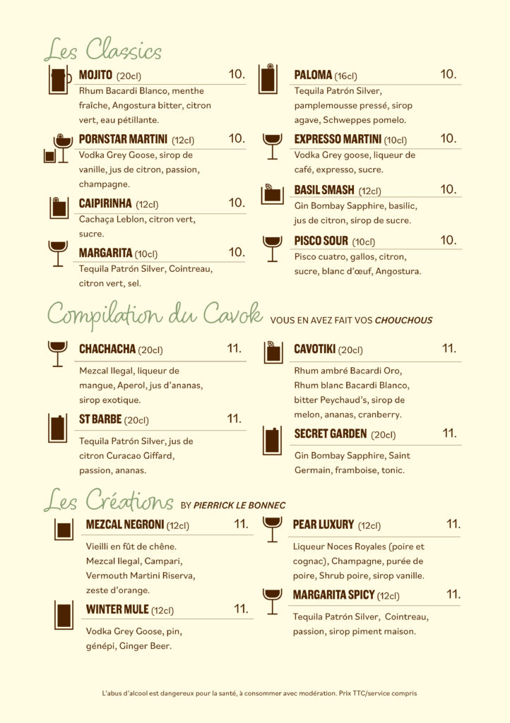 Notre carte bar