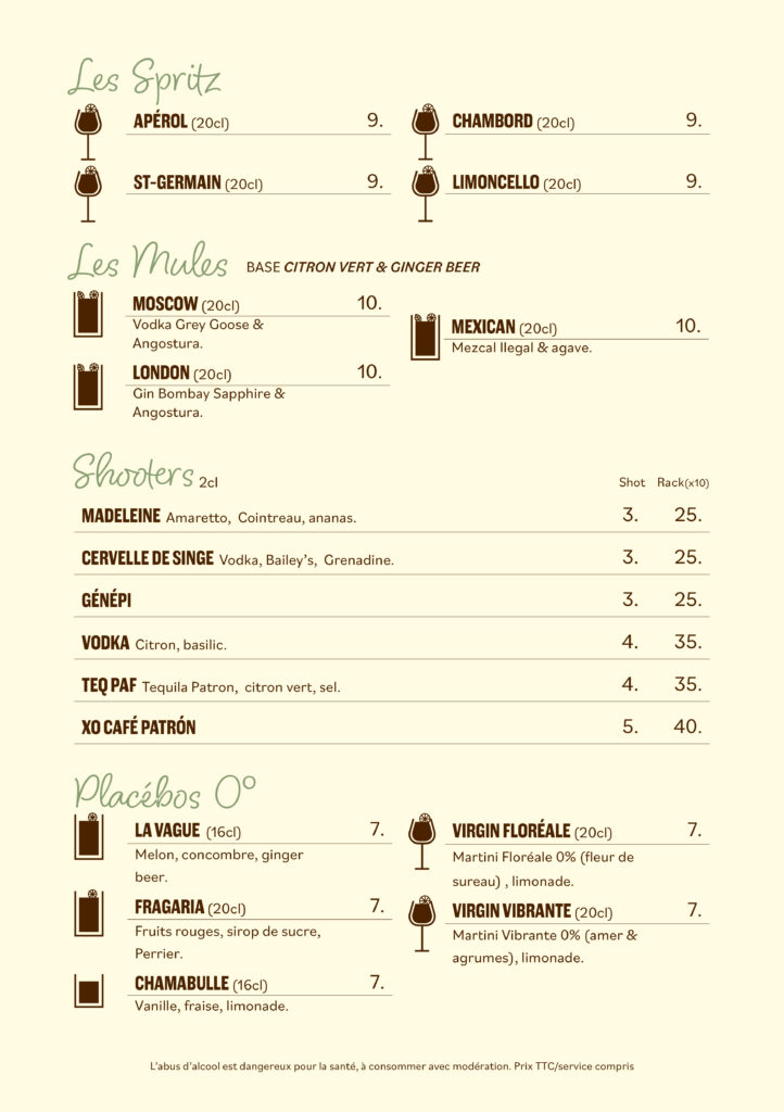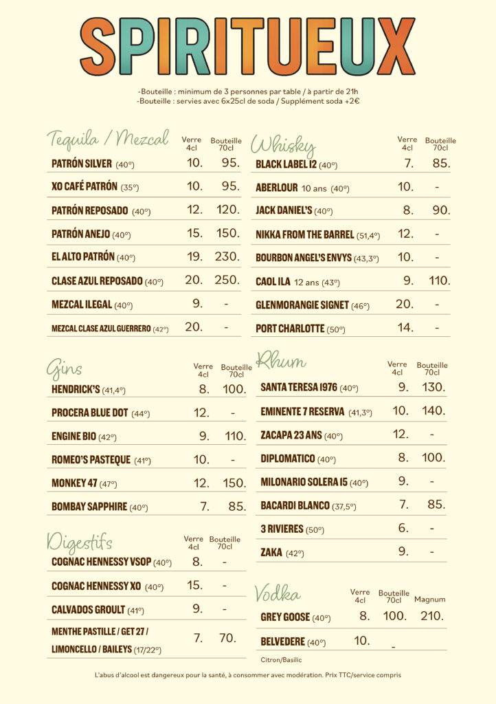 Notre carte bar met à l’honneur les cocktails créations de notre barman en chef Pierrick, des vins et spiritueux soigneusement sélectionnés, l’adresse idéale pour l’apéritif et pour faire la fête jusqu’au bout de la nuit